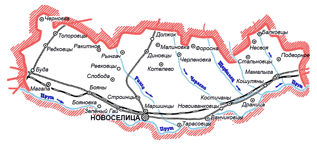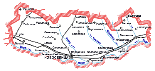 Новоселицкий район расположен в лесостепной зоне, в юго-восточной части области на левом берегу реки Прут.