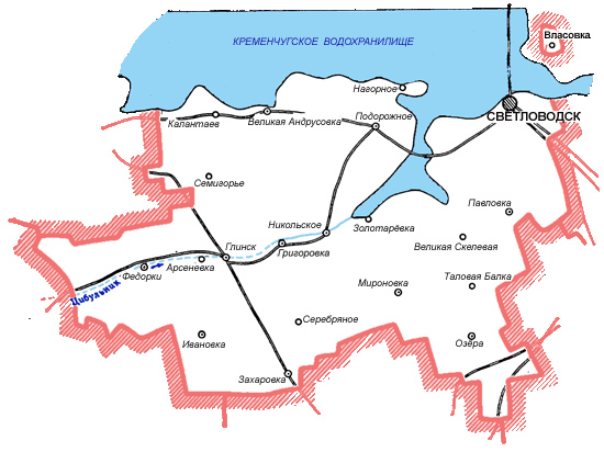 Сооружение ГЭС и водохранилища требовало перенести на новые места некоторые Села и поселки района, в частности Новогеоргиевск. 17 марта 1961 поселок гидростроителей Кременчукгесбуду, в состав которого вошло и древнее село Табурище, и перенесен из зоны затопления Новогеоргиевск объединили в один город, который назвали в честь тогдашнего первого руководителя СССР Никиты Хрущева - Хрущев. Так город и назывался до 1969 года, когда его переименовали в Светловодск.