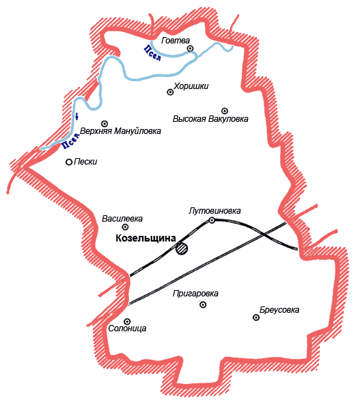 Козельщина – поселок городского типа, центр Козельщинского района и центр Козельщинского поселкового совета, в который, кроме того, входят сёла Квиты, Лозки, Омельничье, Павловка и Подгоровка.