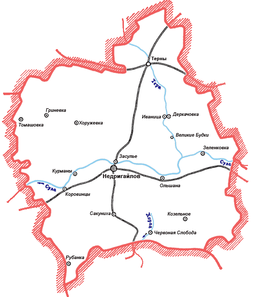 Районный центр смт. Недригайлов, расположенный на автомобильной магистрали Киев - Сумы.