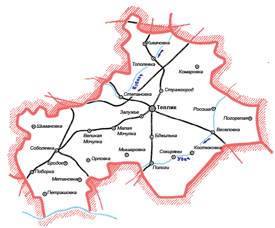 Теплицкий район расположен на востоке области в зоне лесостепи.